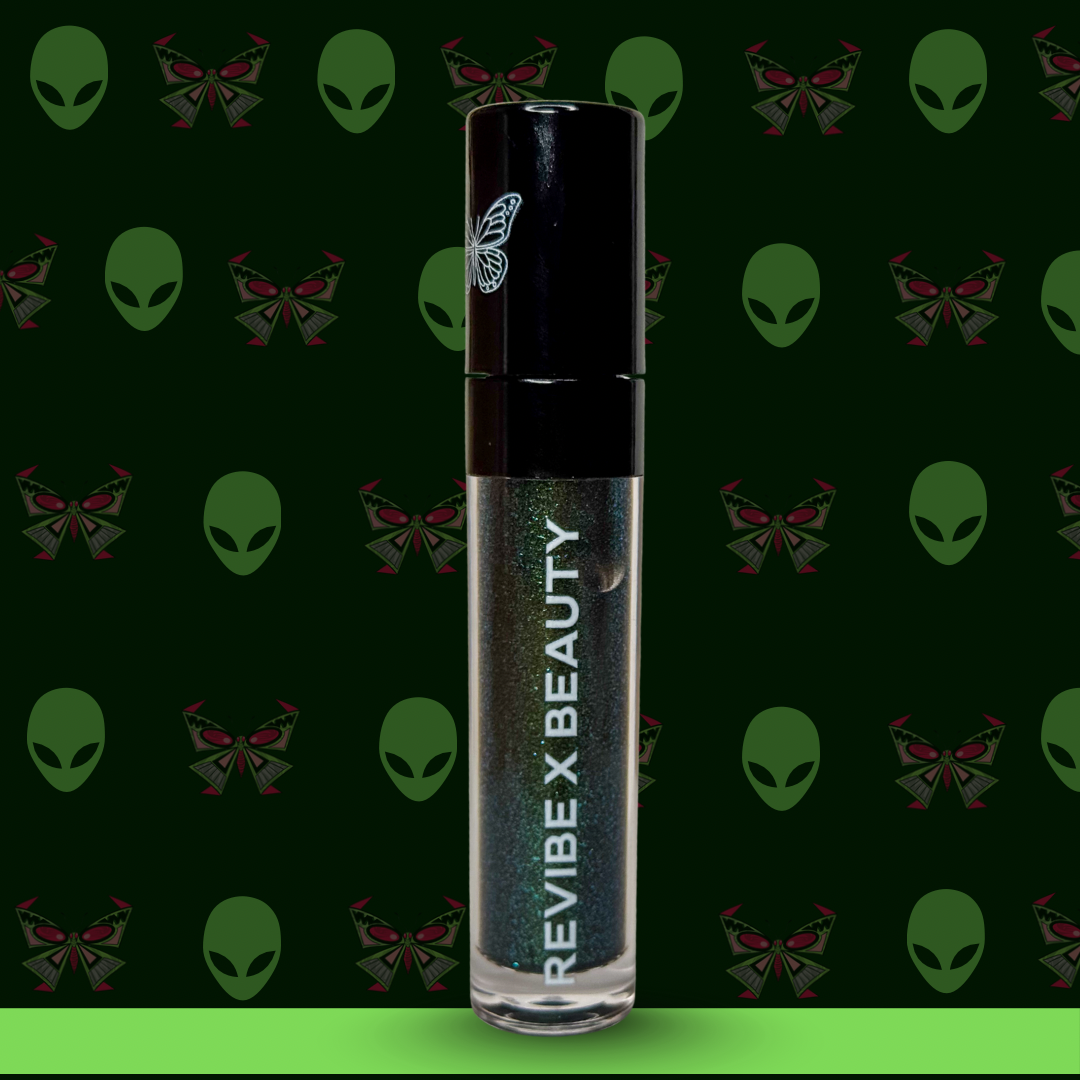 A dark green gloss with glowing green shimmer that demands attention. Inspired by the power of the Irken Empire, this bold shade brings alien elegance straight to your lips. With a blackberry scent.